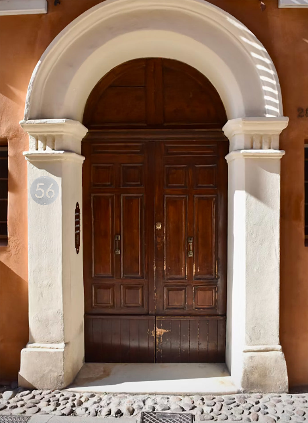 La forma rotonda e la finitura satinata donano al numero civico un look moderno e discreto.