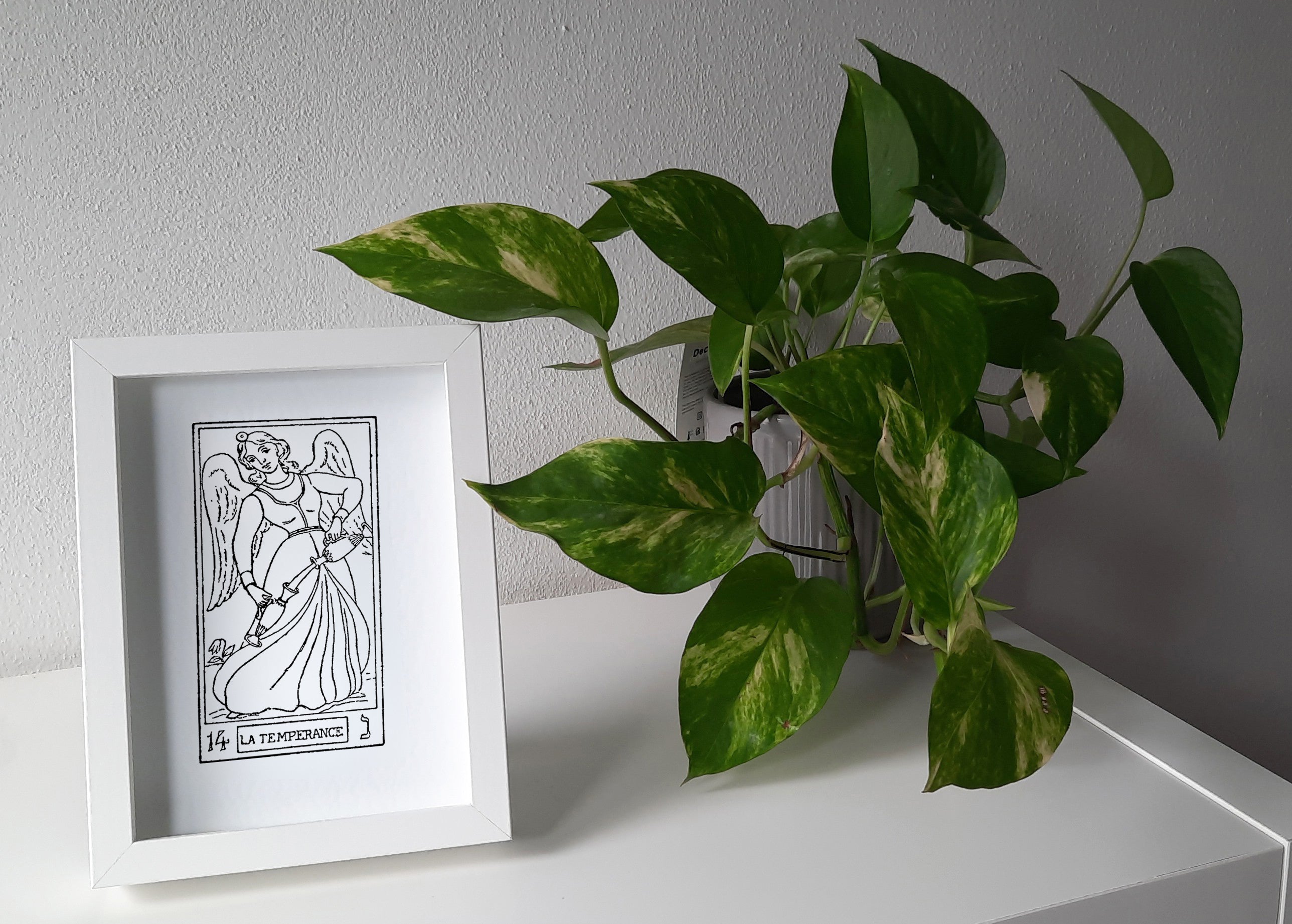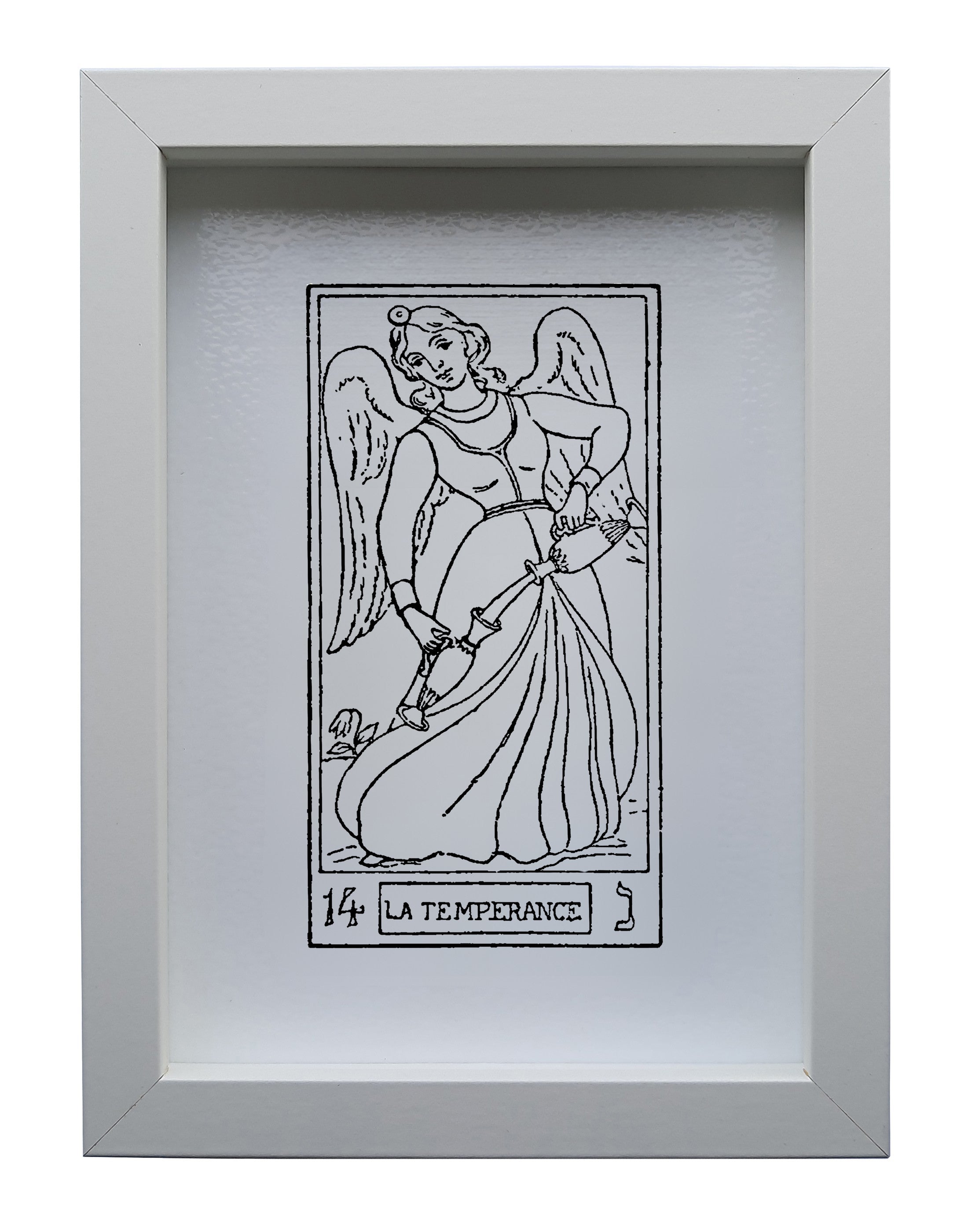 Il quadro “La Temperanza” fa parte della collezione I Tarocchi: un'opera d'arte contemporanea incisa a laser su vetro, che esplora l'armonia, l'equilibrio e la moderazione. La cornice in legno naturale, semplice e sobria, rende omaggio alla serenità che la temperanza porta nella vita quotidiana.