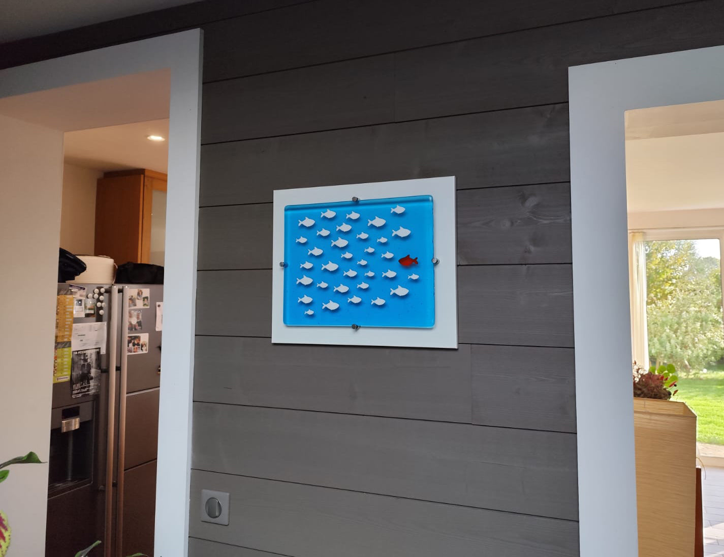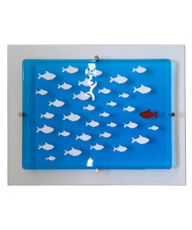 L'opera moderna e simbolica raffigura un branco di pesci che nuotano tutti nella stessa direzione, ad eccezione di uno, di colore diverso, che sceglie con coraggio la via opposta. Questo quadro unisce stile e significato: un invito a distinguersi, a seguire la propria strada senza paura di essere diversi. Perfetto come complemento d’arredo per ambienti contemporanei, uffici o spazi creativi, è anche un regalo originale per chi ama messaggi motivazionali e di forte personalità.