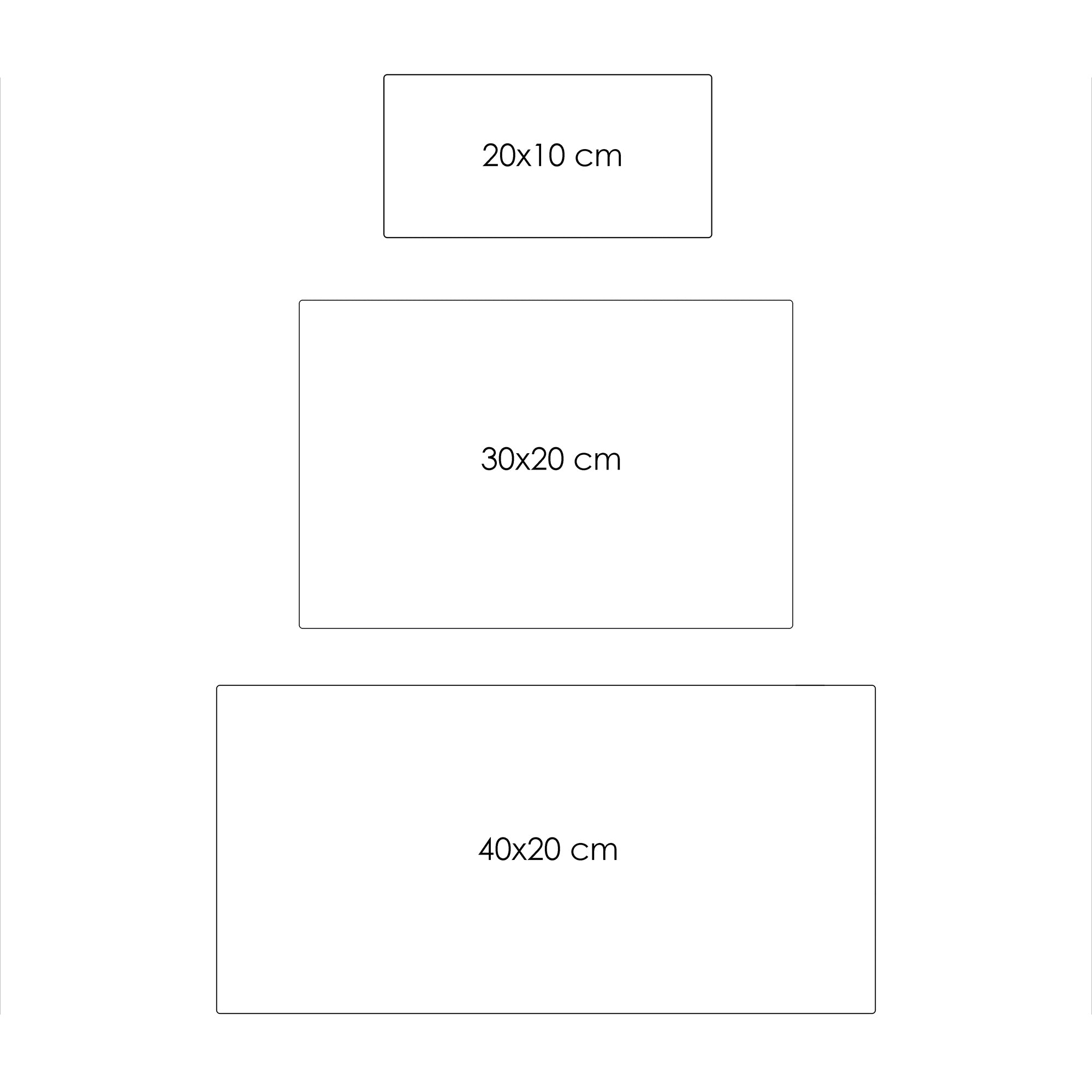 Disponibile in varie dimensioni: 20x10 cm / 30x20 cm / 40x20 cm, per adattarsi a ogni esigenza.