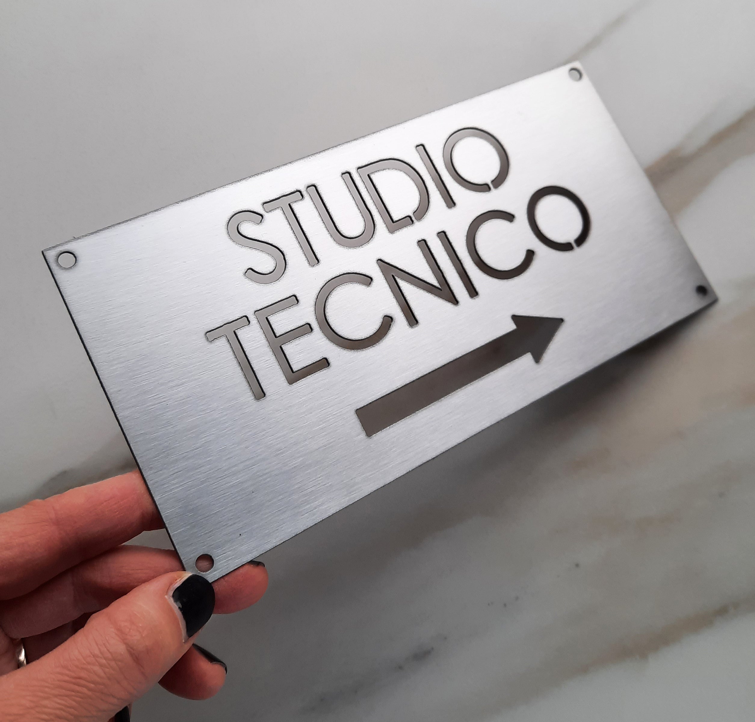 Insegna Studio in acciaio inox, varie dimensioni da 20x10 cm | Personalizzabile per esterni con il Tuo Logo Rettangolare