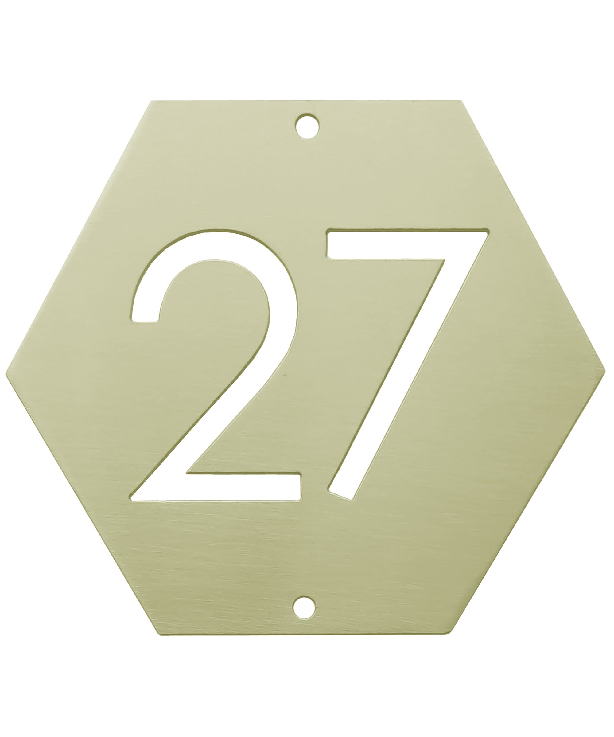 La forma esagonale e la finitura satinata donano al numero civico un look moderno e discreto.