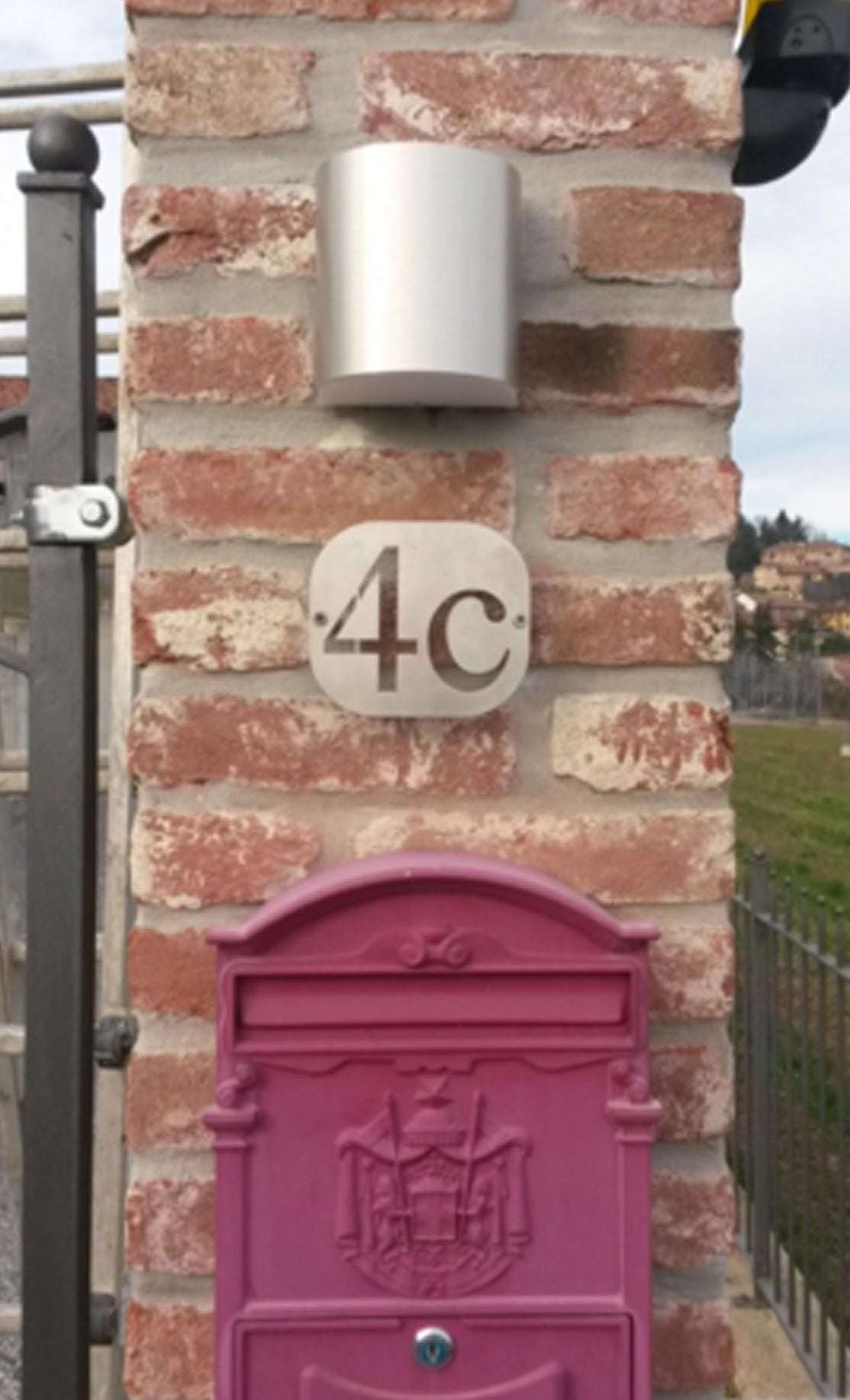 Il numero civico è realizzato in acciaio inox di alta qualità, tagliato con tecnologia waterjet e lucidato a mano.