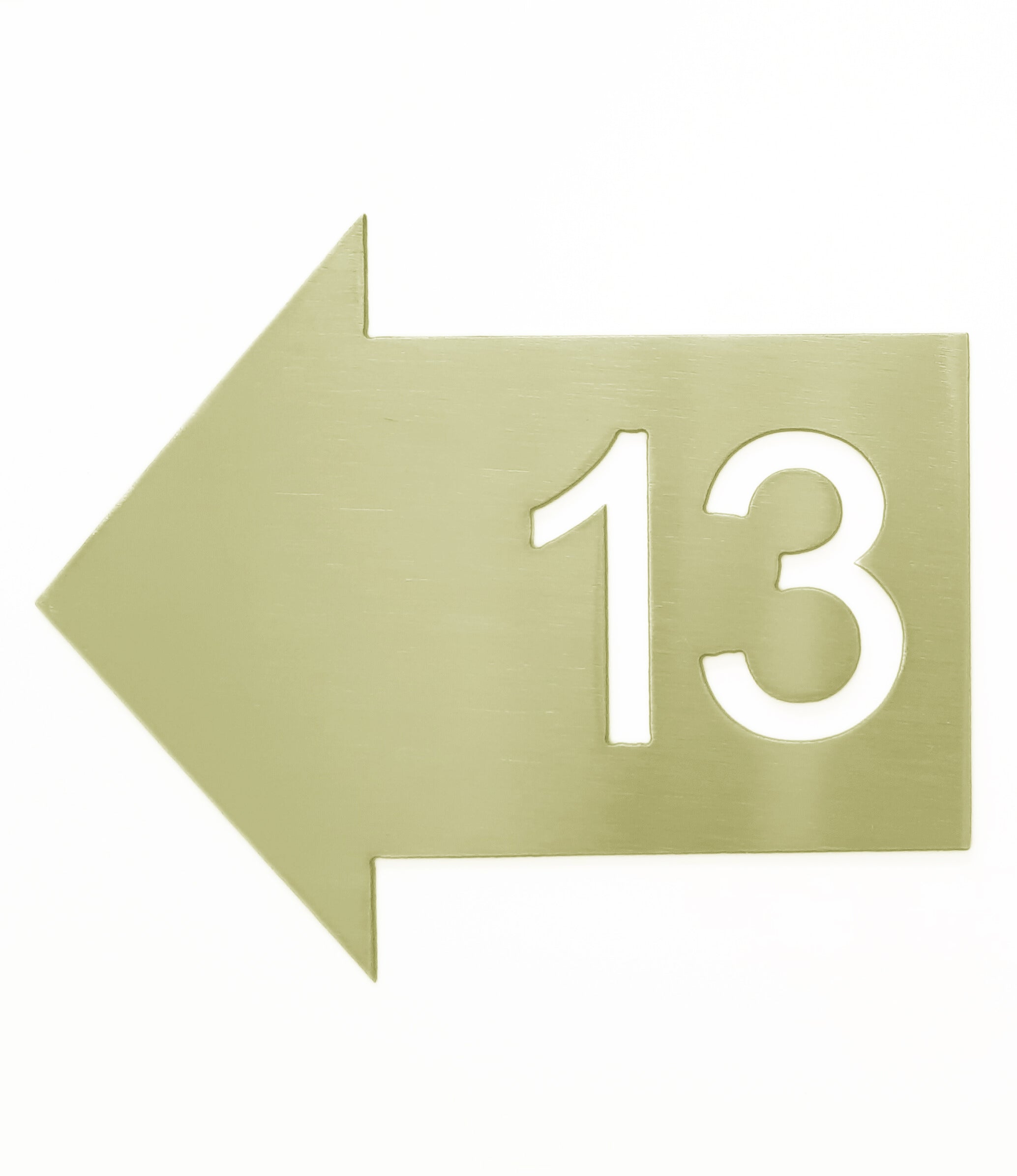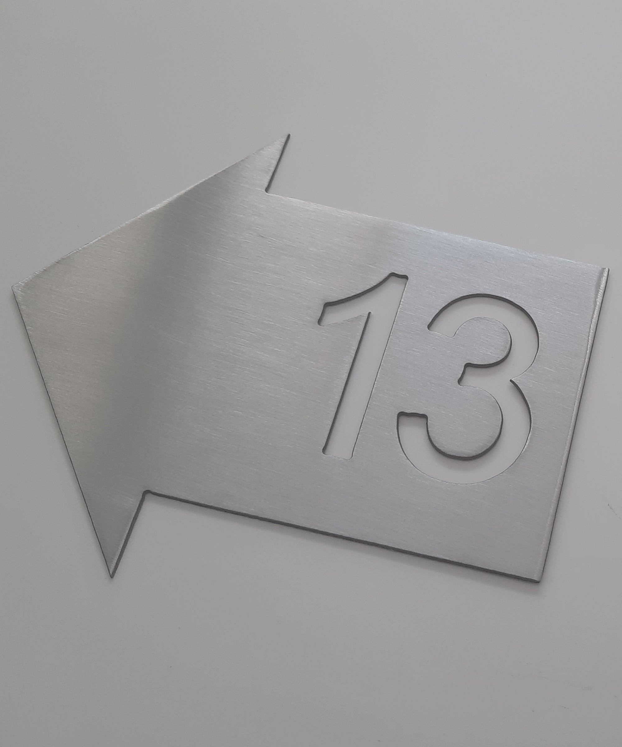 Numero civico traforato a forma di Freccia in acciaio inox | Personalizzabile per esterni