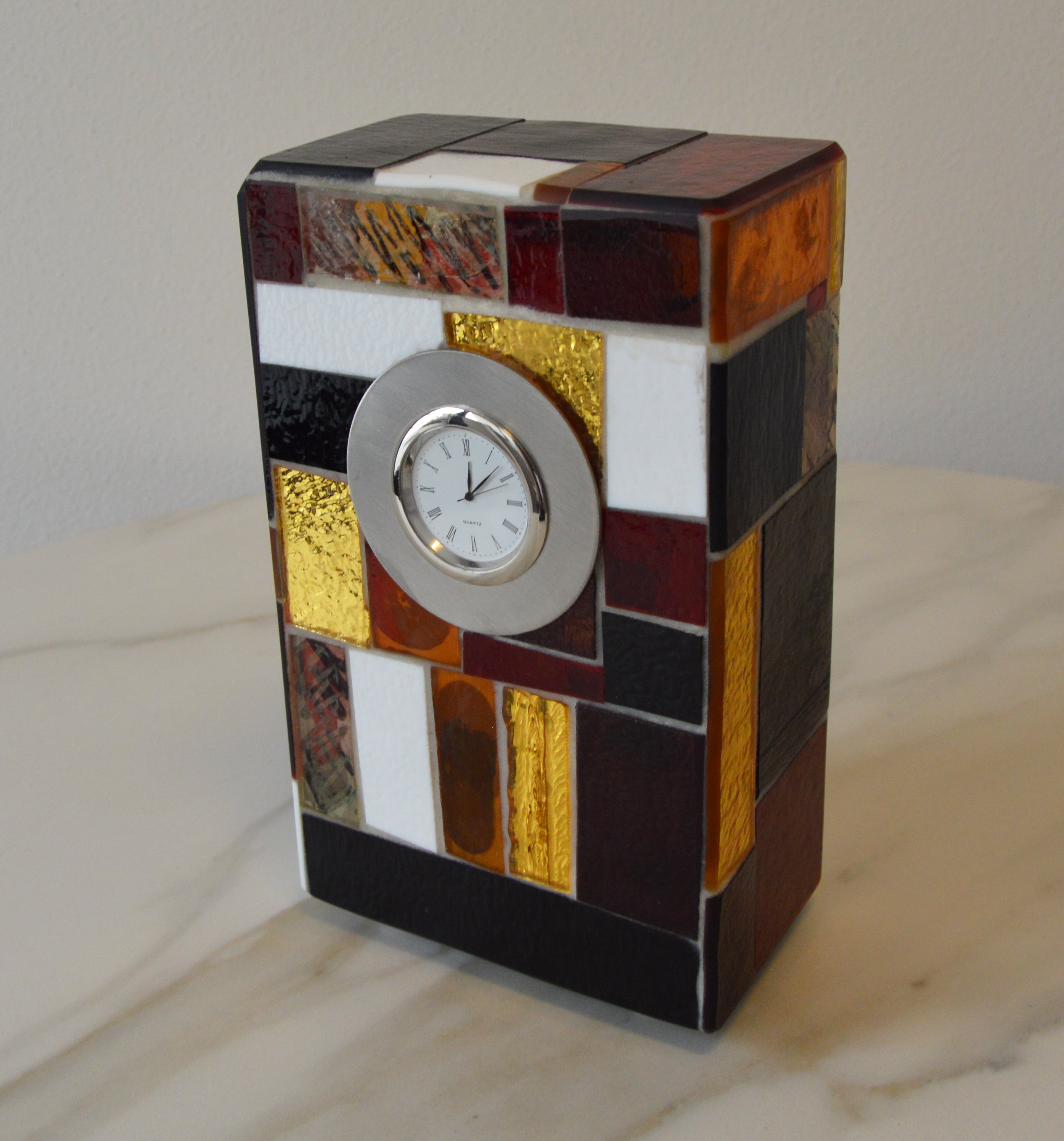 Orologio da tavolo in vetro di Murano – Tecnica Trencadis | 13x22H cm | Pezzo unico