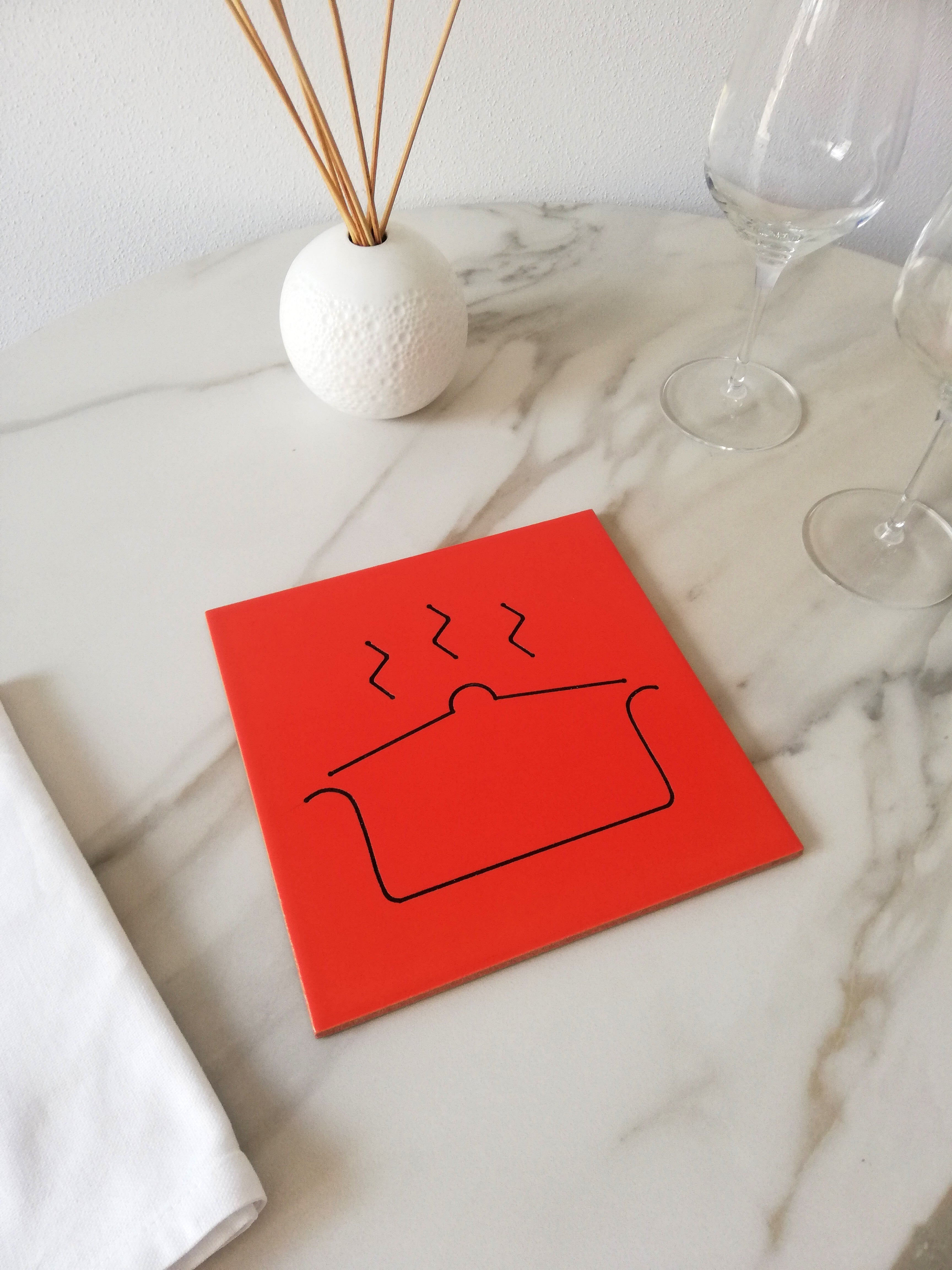 Sottopentola in ceramica artigianale – 20x20 cm | Design inciso a laser