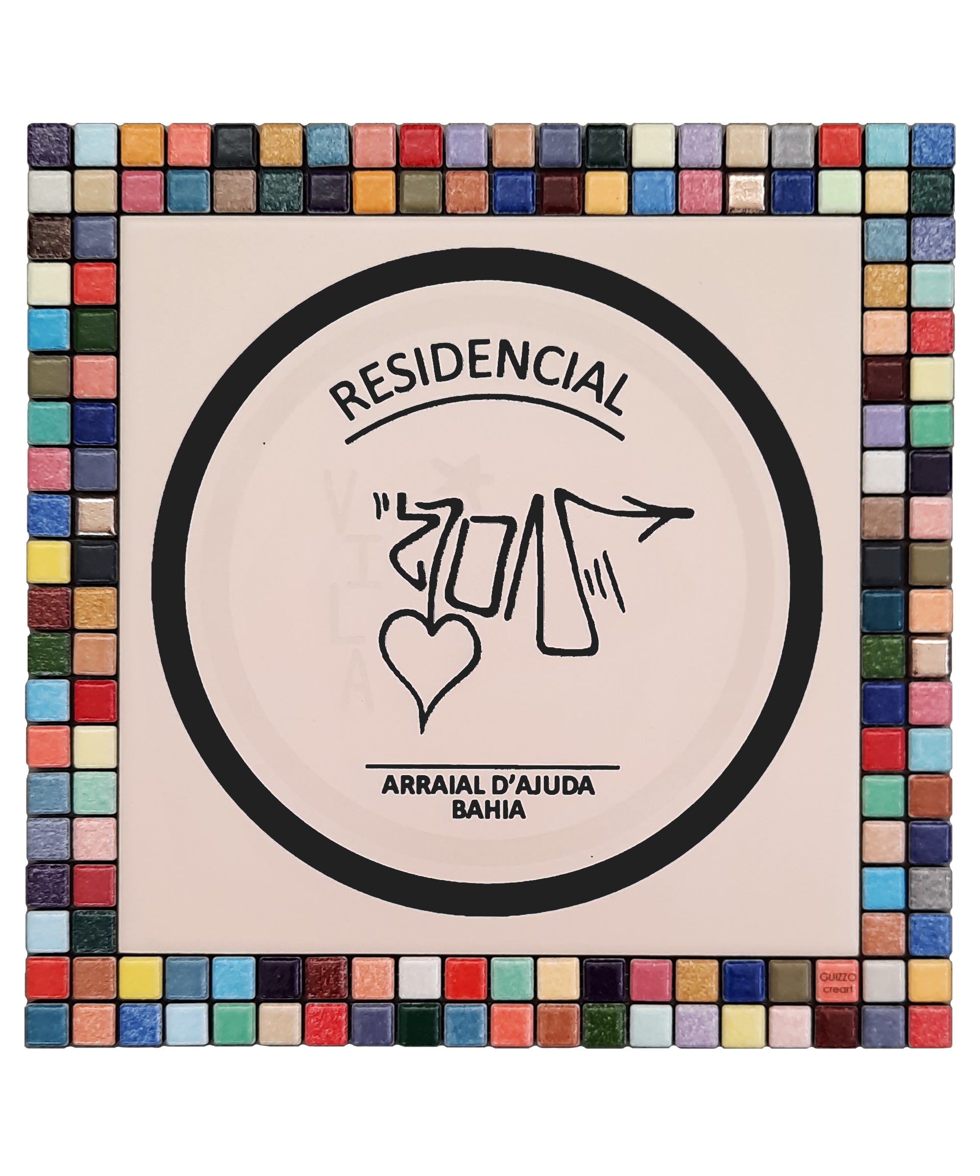 La targa in ceramica con cornice in mosaico è una scelta elegante per personalizzare l'ingresso del tuo condominio, casa, attività, ufficio o negozio.